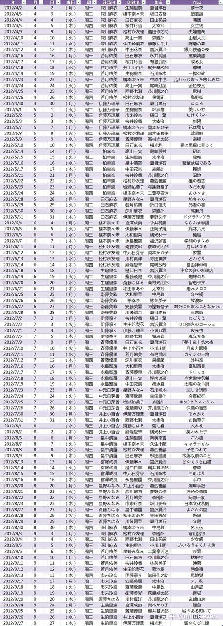 2017在团期间的她还拍摄了《橋本奈々未の恋する文学》冬之旅和夏之旅,这部个人番组堪称微缩版的桥本个人纪录片、北海道旅游番组、日本文学名著赏析三合一,透过这部番组更加坦然的讲述她对于成为偶像的真实想法。早在成立初期,乃木坂就有类似的番组出现:乃木坂浪漫。《乃木坂浪漫》(のぎざかろまん)是2012年4月2日至9月27日,每周一至周四深夜放送的迷你节目。 乃木坂46的成员们将每日轮流登场,朗诵日本文学史中的名作中令人印象深刻的场面。乃木坂浪漫从4月2日开播,到9月27日迎来最终回,共播出104集,历时近六个月,期间跨越二单对战宅姐、三单初动第一,终于在四单空降秋元前完成任务。Steven123orz整理了成员们的出场以及数目,非常感谢!